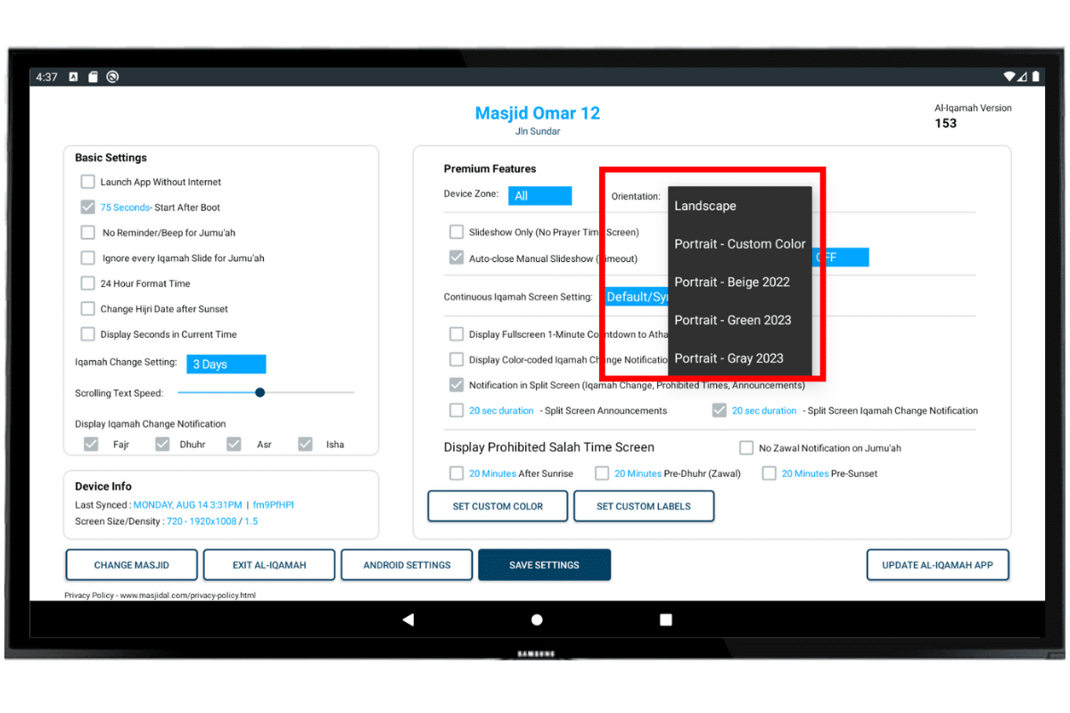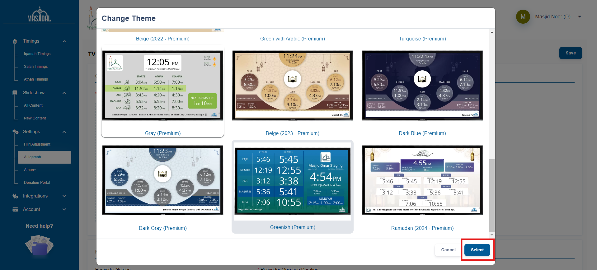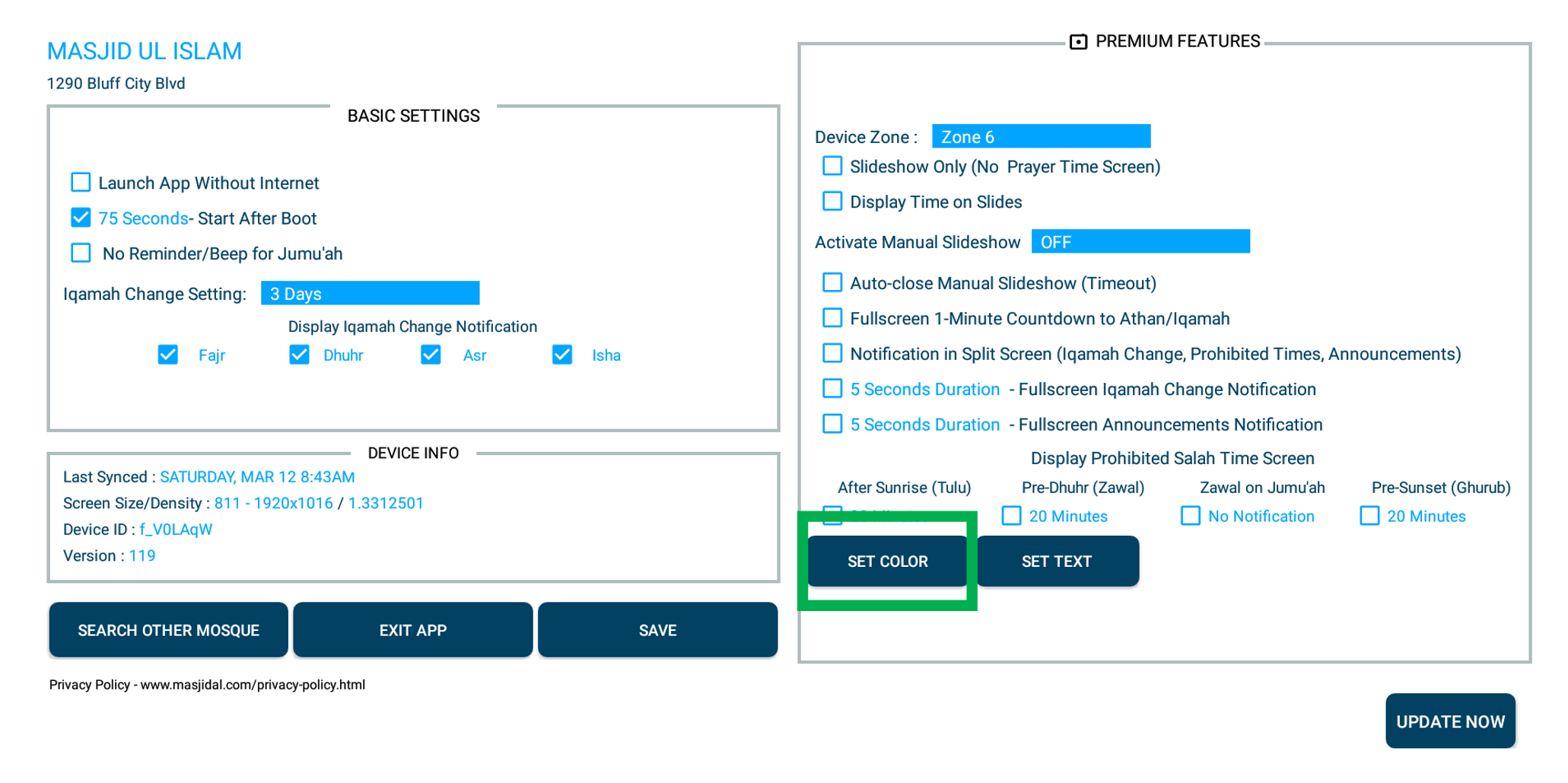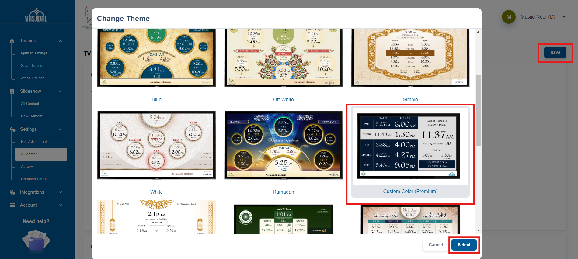 Setting the custom color is a premium feature available to Al-Iqamah Professional accounts.