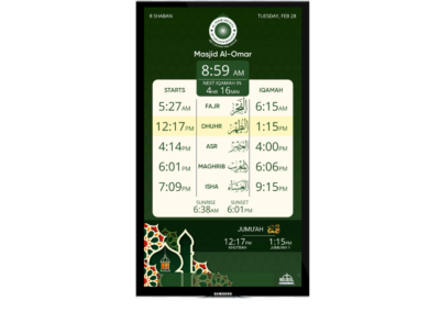Mulitiple different themes are available for you to choose from. Simply select the theme from the change screen button, select your theme, and save. The new theme will be displayed on the TV screen.